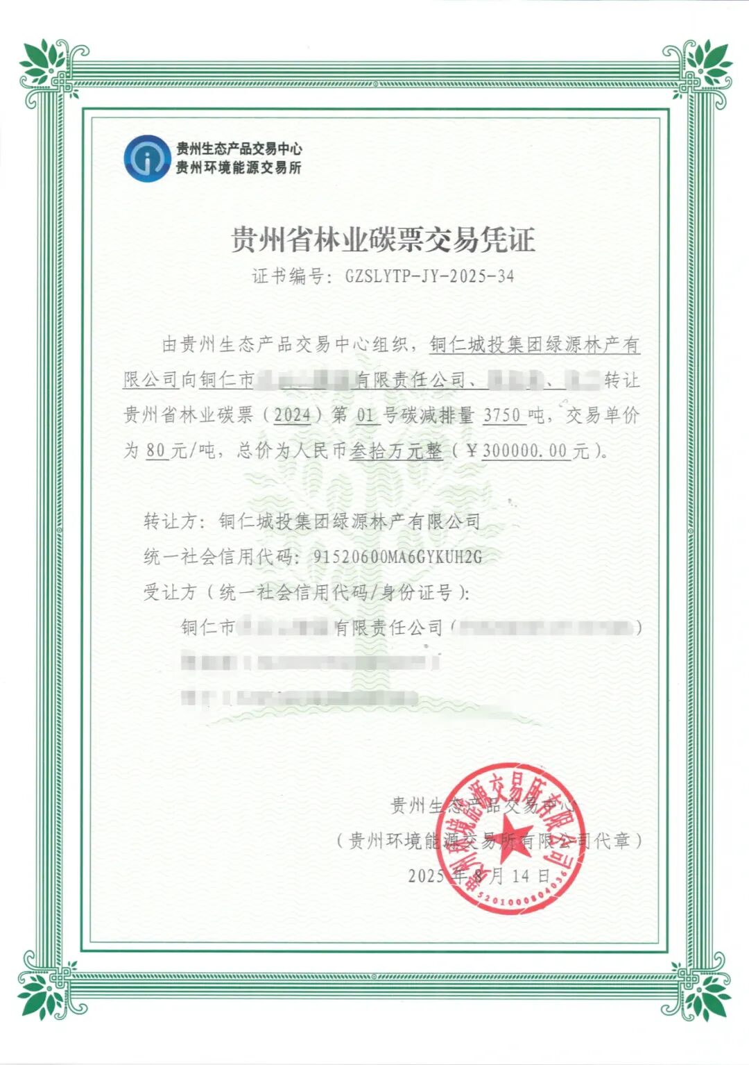 2025年8月15日,贵州省铜仁市、碧江区检法两级院联合举行全国生态日主题法治宣教活动,联合签发碳汇司法实践协作机制,并举行司法碳票交付仪式。据悉,此次碳票交易由碧江区检察院办理的一起非法占用农用地刑事附带民事公益诉讼案件当事人出资认购,通过持有碳票的公司作为出让方参与交易,由贵州生态产品交易中心组织交付实现。这张“司法碳票”交易价30万元人民币,创下贵州省司法赋能碳汇交易单笔最高额纪录。